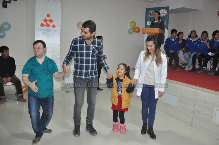 Yüksekova Teknokent Koleji ve Özel Öz İlgi Özel Eğitim ve Rehabilitasyon Merkezinin ortaklaşa yaptıkları etkinliğe, özel gereksinimli öğrenciler, velileri, öğretmenler ve kolej öğrencileri katıldı. Okulun konferans salonunda kolej müdürü Cebra İrinç'in açılış konuşmasıyla başlayan etkinlik, müzik ziyafetiyle devam etti.