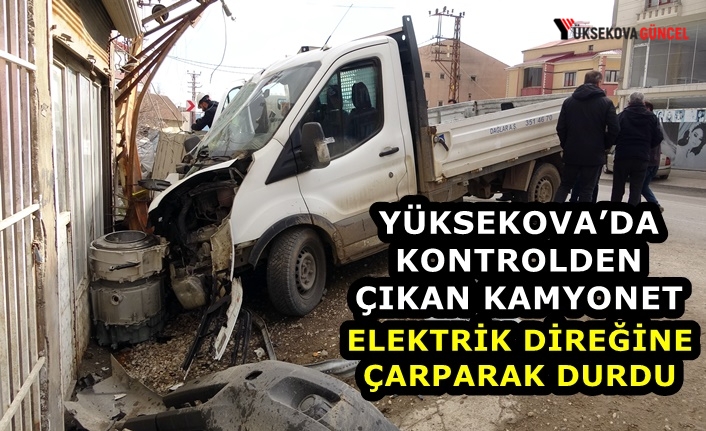 Yüksekova ilçesinde kontrolden çıkan kamyonet elektrik direğine çarparak durdu. Kazada sürücü ise yaralandı.