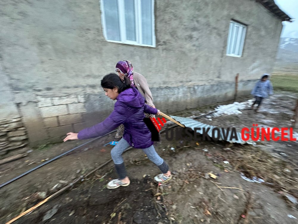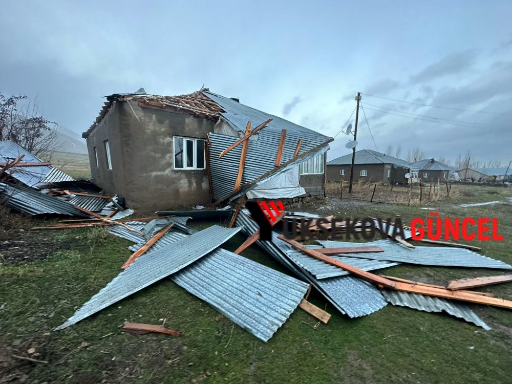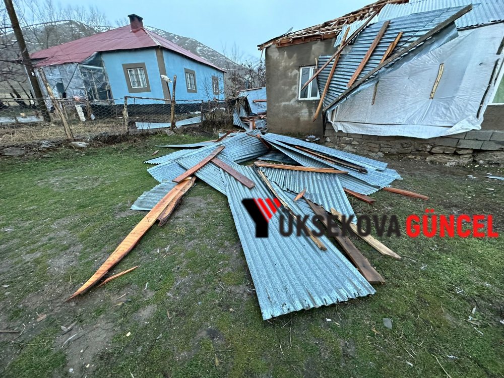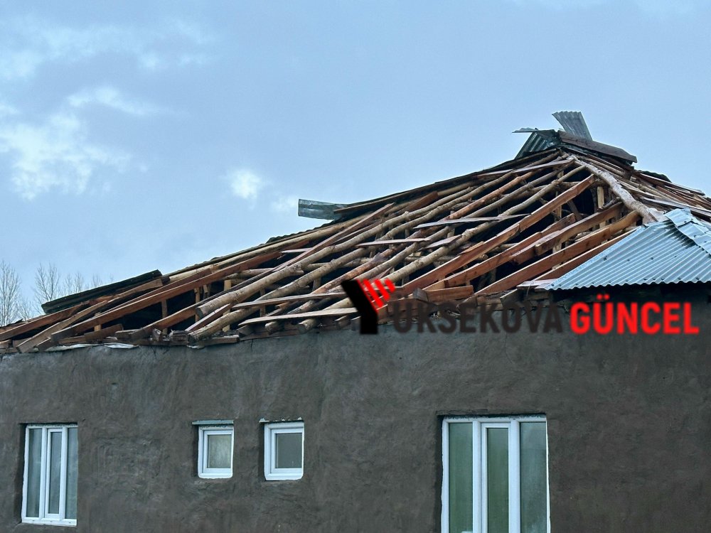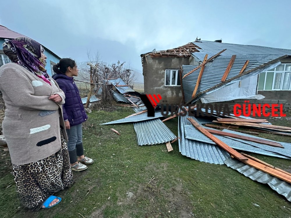 Çatıdan kopan sac ve kereste parçaları çevreye savrulurken, bunun üzerine sabah saatlerinde evin durumunu gören köy sakinleri hemen İrinç ailesinin yardımına koştu.