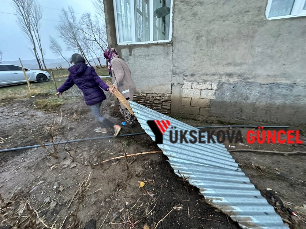 Yüksekova ilçesinde gece başlayan yoğun fırtına İrinç ailesinin evinin çatısını yerinden sökmesi faciadan dönüldü.