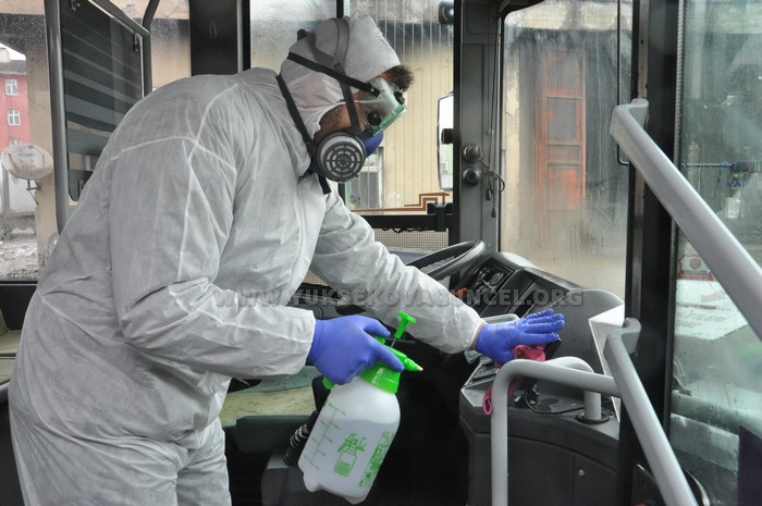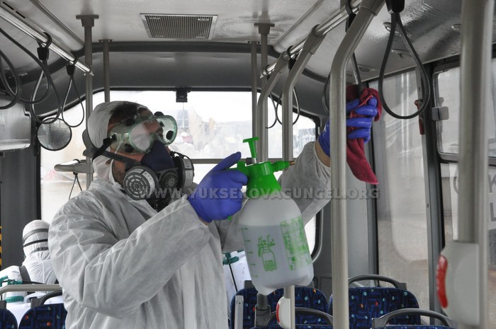 Yüksekova Belediyesi Temizlik işleri Müdürlüğü ekipleri, korona virüse karşı toplu taşıma, araçlar, cami, resmi kurumlar ve insanların temasta bulunduğu bütün ortak alanlar da dezenfekte uygulaması yaptı.