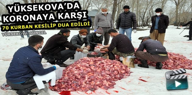 Yüksekova ilçesinde korona virüsü salgınının def edilmesi için kurban kesilip dua edildi.