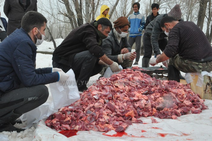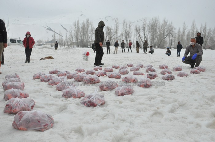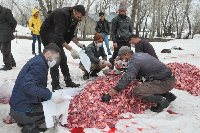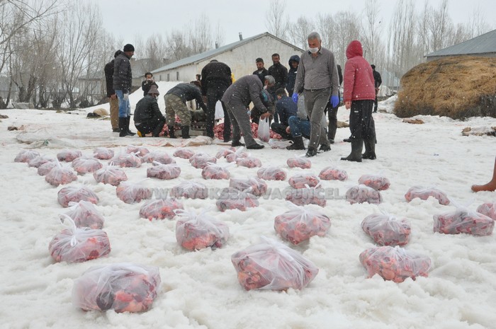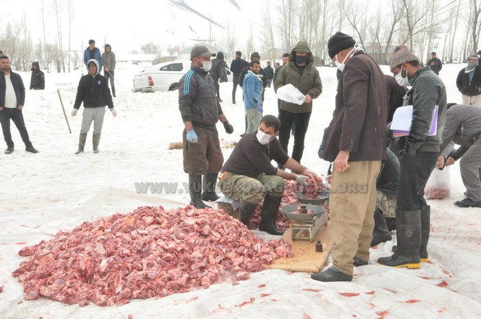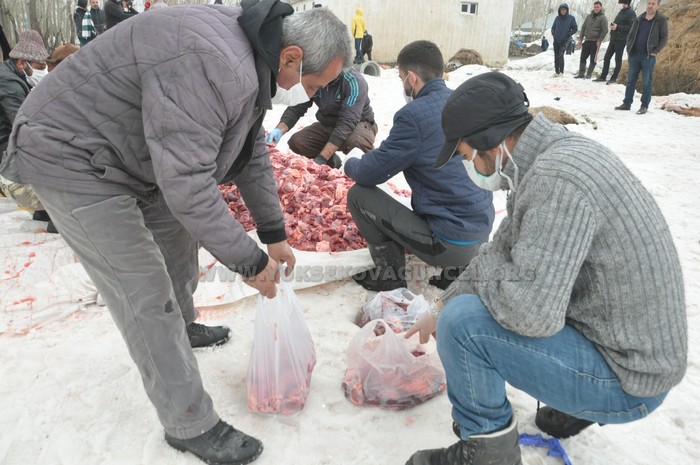 Virüs salgını nedeniyle köyü giriş çıkışlara kapattıklarını dile getiren köy muhtarı Hamza Han, “Toplam 70 hayvanı kurban olarak kestik. Köyümüz 200 hanedir, hepsine dağıtacağız. Bu hayır inşallah bu salgının bitmesine sebep olur. Bu güzel davranışa destek veren tüm köyümün sakinlerine de çok teşekkür ederim” dedi