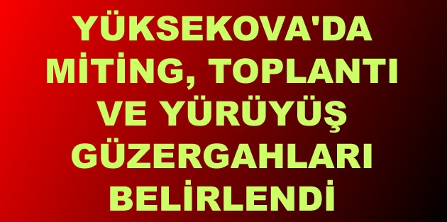 2911 Sayılı Toplantı ve Gösteri Yürüyüşleri Kanununa göre Yüksekova ilçesinde düzenlecek gösteri yürüyüşü güzergâhı olarak Halit OKAY İlköğretim Okulu ile Yüksekova Yenişehir Stadyumu arasında kalan yol,