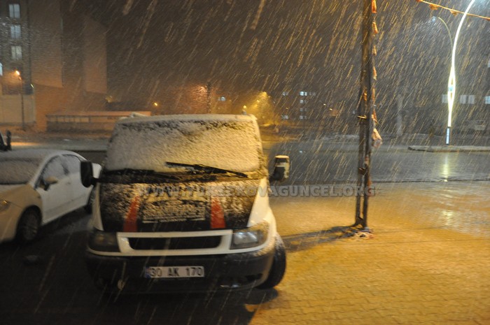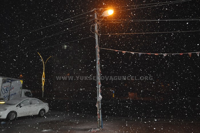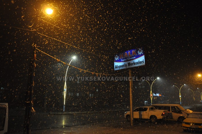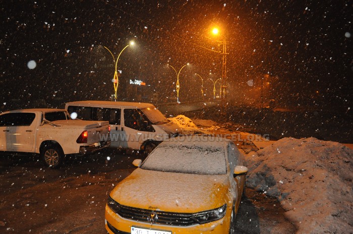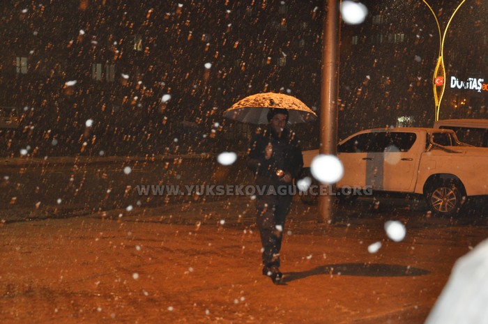 Yüksekova ilçesinde akşam saatlerinde yağan lapa lapa kar yağışı hayatı olumsuz etkiledi.