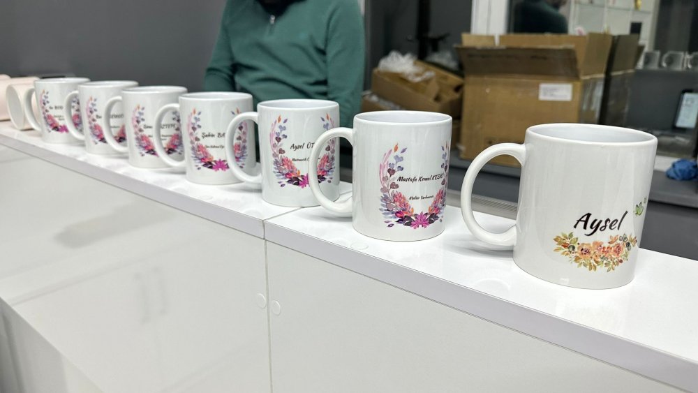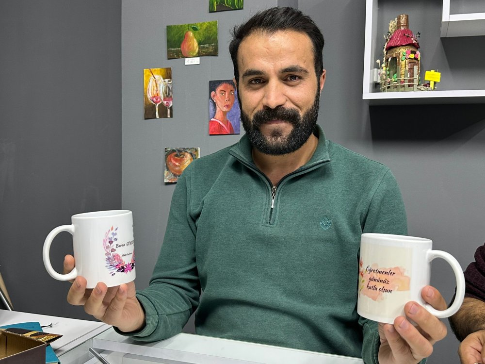 Öğretmenler Günü nedeniyle akşam mesaisinde olduklarını belirten Rıdvan Turun, “Öğretmenler Günü’ne saatler kala biz de hediyeleri yetiştirmek için akşam mesaine devam ediyoruz. 3 kişi olarak şu an burada farklı işlemler yapıyoruz. Şu an kupa bardak, kalem ve diğer farklı ürünlere baskı yapıyoruz. İnşallah hepsi yetişecek. Bu vesileyle tüm öğretmenlerimizin gününü kutluyoruz” dedi.