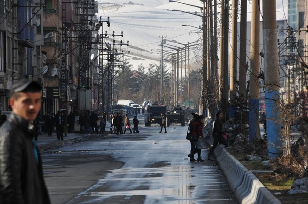 YÜKSEKOVA-Öğle saatlerinde polis, Yüksekova İlçesi'nin Cengiz Topel Caddesi üzerinde park halinde bulunan araçların kaldırılması için zırhlı araçlardan anons yaptı. Yapılan bu anonslar üzerine caddede toplanan bir grup, yapılan anonslara tepki gösterdi.