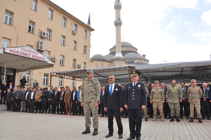 Hükümet Konağı bahçesinde düzenlenen törene Yüksekova Kaymakamı Ramazan Kendüzler, Yüksekova Garnizon Komutanı Albay Hasan Koyuncu, Yüksekova İlçe Emniyet Müdürü Haluk Baş, Esendere Belde Belediye Başkanı Dırbaz Büyüksu, sivil toplum örgütü temsilcileri, muhtarlar, kurum amirleri, öğrenci ve öğretmenler katıldı.