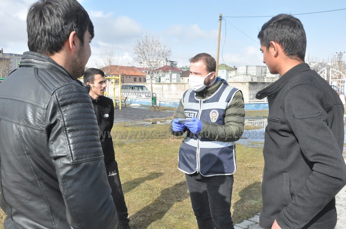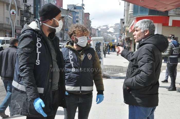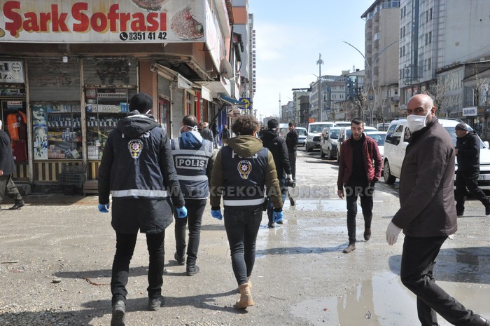 Hakkari'nin Yüksekova ilçesinde polis ve zabıta ekipleri korona virüs tedbirleri kapsamında vatandaşları uyardı.