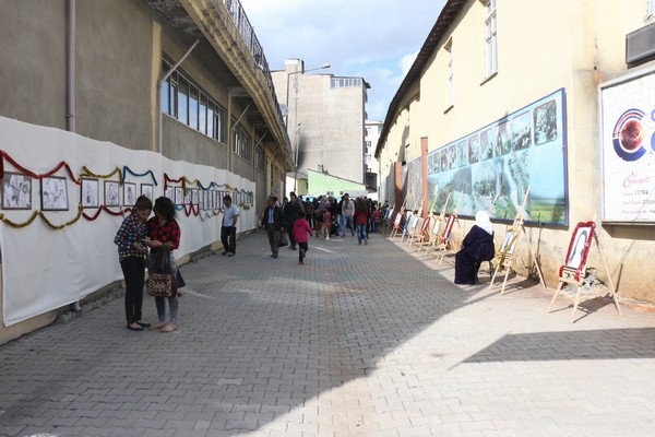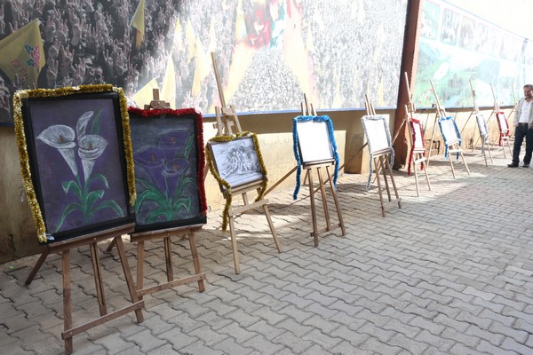 Sergide Eğitim Destek Evi öğrencisi Gülcan Orpak'ın 1 ayda yaptığı kara kalem çizgi çalışmaları sergilenecek. Açılış kurdelesi kesilmeden önce kısa bir açıklama yapan Orpak, Kürdistan coğrafyasını yok etmek isteyen emperyalist bir sistemin varlığından söz ederek, "Bu şeytansı sisteme karşı gaflete düşmemek için, felakete sürünlenmemek için, esaretli yaşam zincirlerini kırmak için, içten yaşadığımız acıları bir daha yaşamamak için halkımızın geçtiği zorlu süreçleri tablolarımıza yansıttık. Daha özgür yarınlar oluşturmak için gece gündüz aşk ile emek ile hasret ile çalışmak gereklidir" ifadelerini kullandı.
