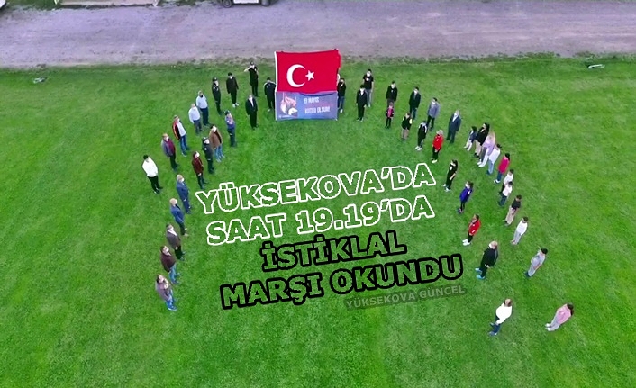 Yüksekova ilçesinde vatandaşlar, 19 Mayıs Atatürk'ü Anma, Gençlik ve Spor Bayramı etkinlikleri kapsamında saat 19.19'da ellerinde Türk bayraklarıyla İstiklal Marşı'nı okudu.