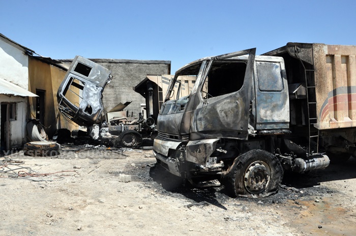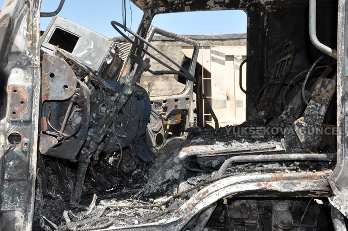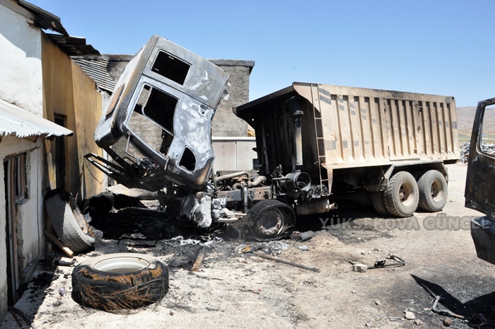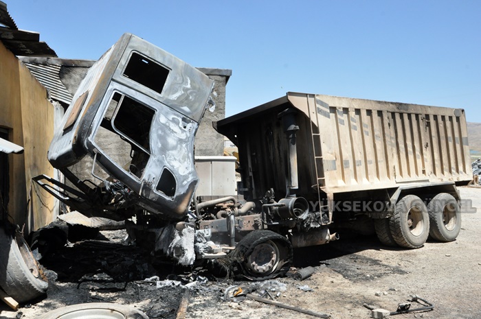 Yüksekova ilçesine bağlı Buşbulak köyünde, dün akşam kişi ve kişilerce, bir şantiyeye baskın düzenlenerek 3 kamyon ile şantiyenin yakıt deposu, araç malzemeleri ve idari bölüm yakıldı. Silahlı saldırıya uğrayan şantiye bekçisi hastaneye kaldırıldı.