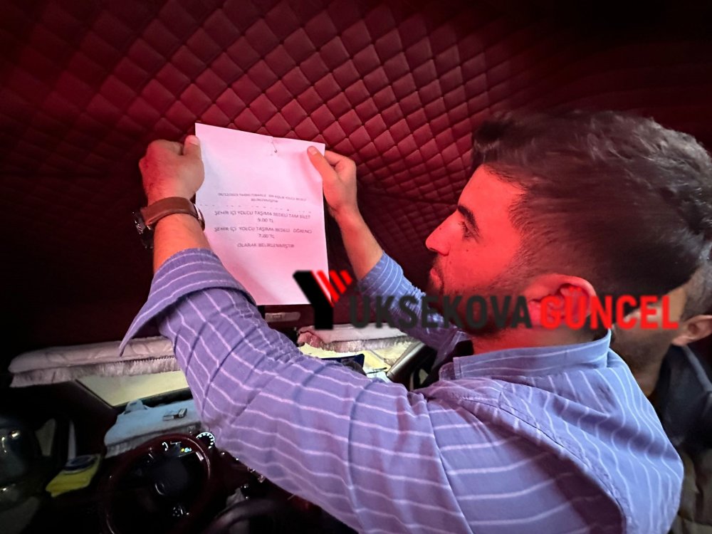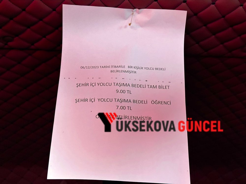 Minibüslere asılan kağıtlarda ise, Şehir içi yolcu taşıma bedeli tam bilet 9 TL ve Şehir İçi yolcu taşıma bedeli öğrenci 7 TL olarak belirlendi.