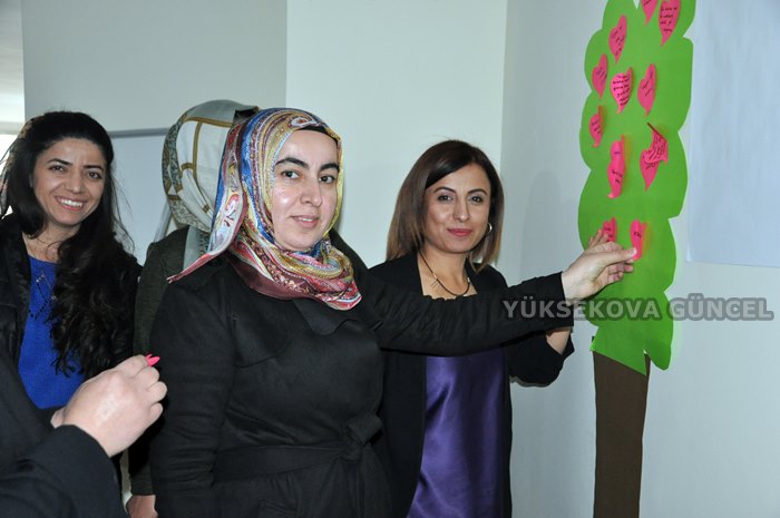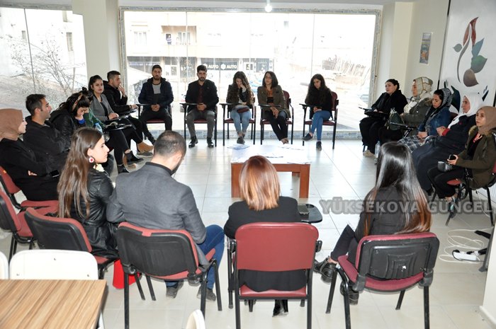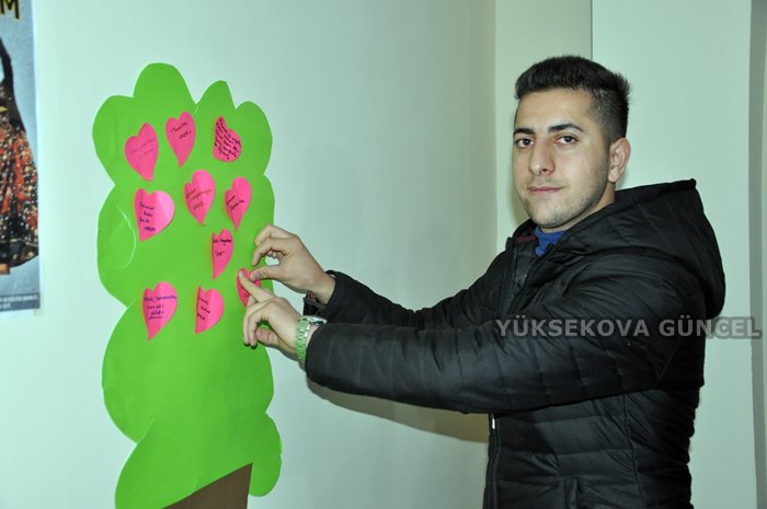 Burada konuşan Yüksekova Kadınları Toplumsal Destekleme ve Kültür Derneği Başkanı Hatice Temir, 'Şiddete Hayır' sloganıyla yola çıktıklarını belirterek, "Erkek ve kadınlarla beraber bu çalışmayı yürütmek istedik. Çünkü toplumsal bir sorunumuz var. Kadın ve erkekler birlikte olursak yol alabiliriz. Birlik olabilirsek çözebileceğimize inandık" dedi.