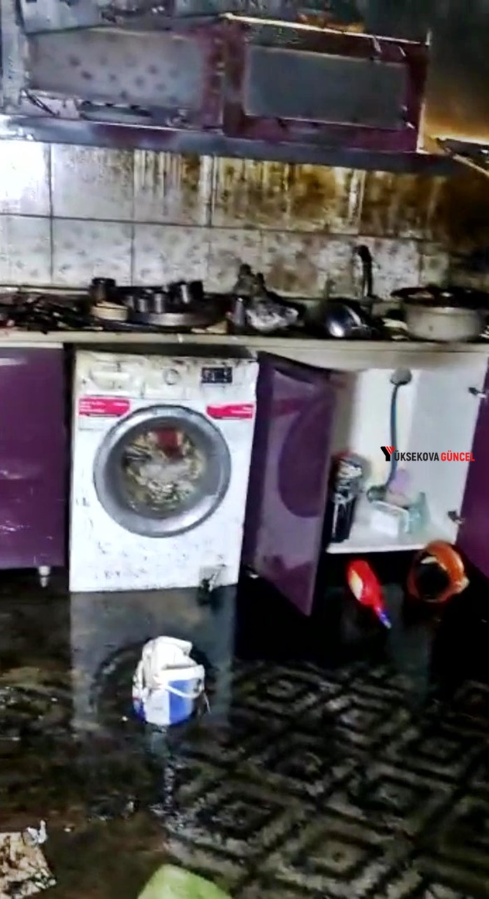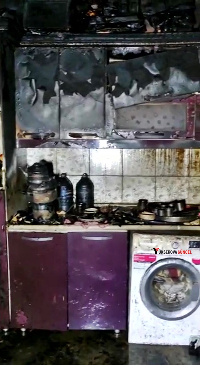 Patlamanın etkisiyle alevlere teslim olan eve, Yüksekova Belediyesi İtfaiye Müdürlüğü ekipleri kısa sürede müdahale etti.