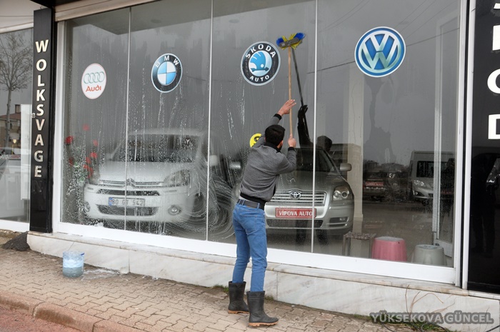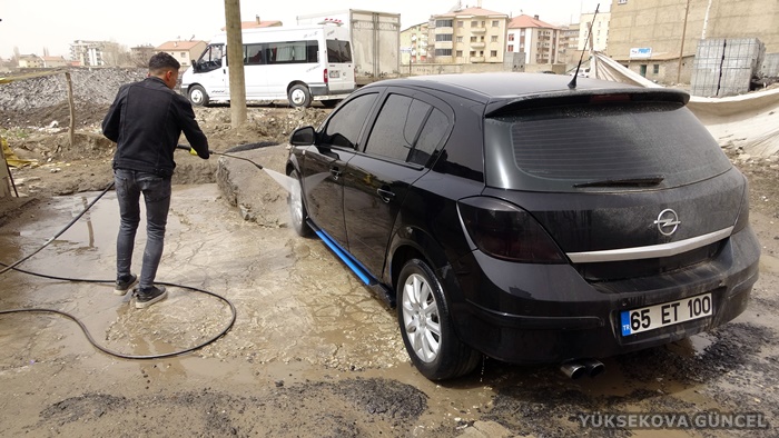 Araçlarını çamurlu şekilde gören vatandaşlar hemen oto yıkamacılara akın ederken, bazı esnaflar işlerinin çamurlu iş yerlerinin camlarını yıkadılar.