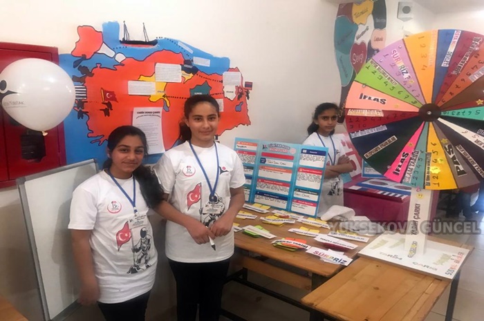 Yüksekova 15 Temmuz Şehitleri Ortaokulu, Ankara'da yapılan TÜBİTAK yarışmasına, bölgede teşvik ödülüne layık gösterilen yarışma için yaptıkları malzemelerle fuarlar açtılar.