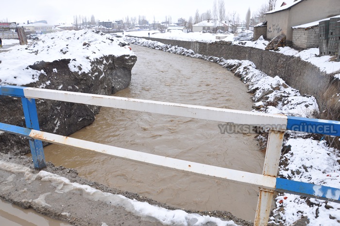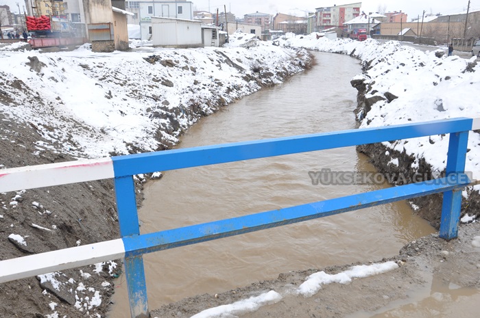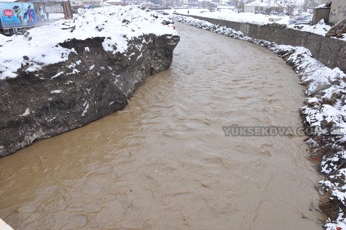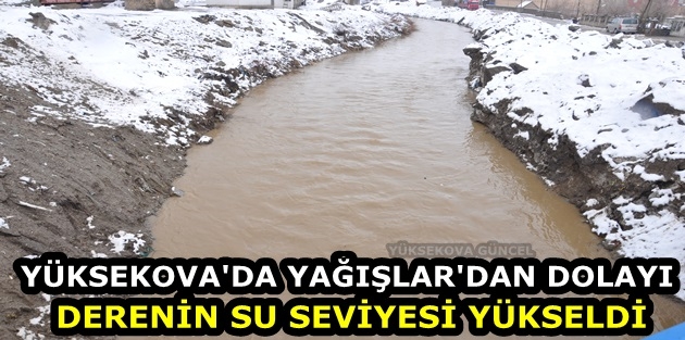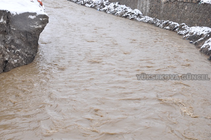 Yüksekova ilçesinde dün akşam başlayan karla karışık yağmur, sabah saatlerinde yerini sağanak yağışa bıraktı. Yağış ve eriyen karlar sonucu, ilçe merkezinden geçen Büyükçay Deresi'nin su debisi yükseldi.