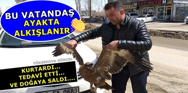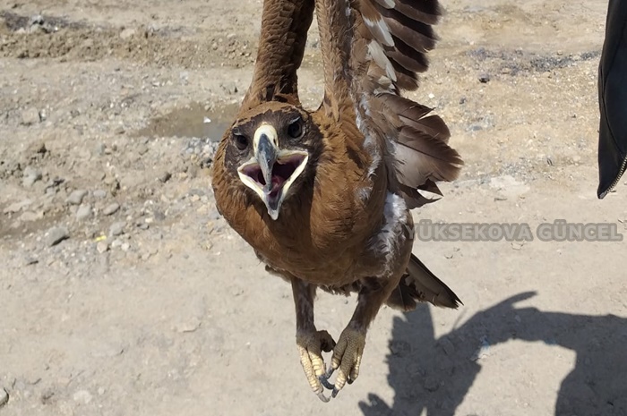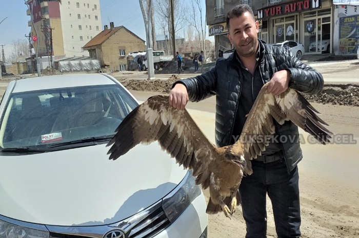 İlçede yaşayan Ferit Karael isimli sürücü, Şemdinli yolu üzerinde seyir halindeyken, yol kenarında yaralı bir şekilde duran bozkır kartalını fark etti.