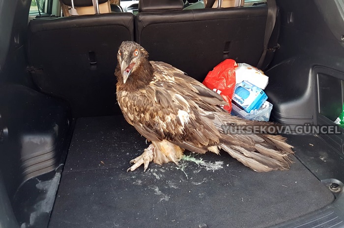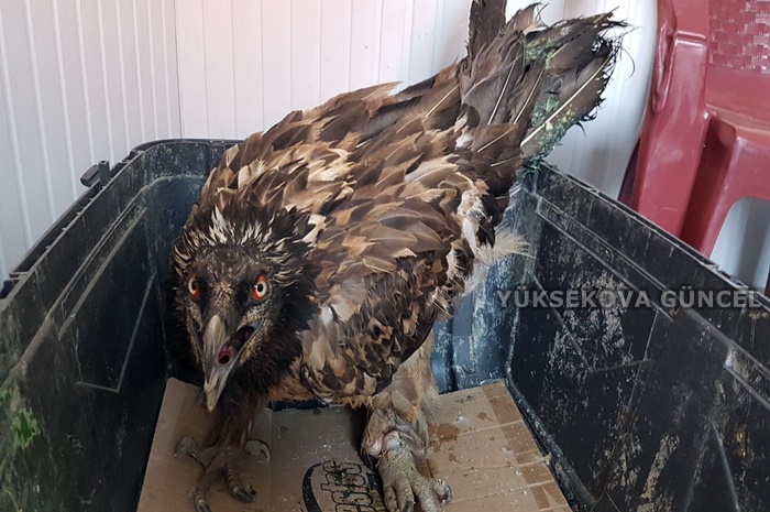 Cilo Dağı eteklerinde koyun otlatan bir çoban tarafından bulunan sakallı akbaba, Yüksekova Belediyesi Hayvan Tedavi Merkezi'ne götürüldü.