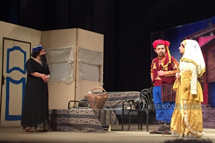 Yüksekova ilçesinde sahnelenen "Yedi Kocalı Hürmüz" adlı tiyatro oyunu büyük ilgi gördü.