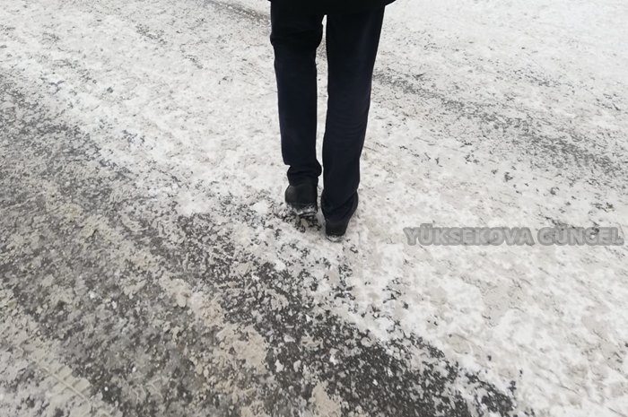 Yüksekova ilçesinde dondurucu soğuklar nedeniyle yollar ve kaldırımlar buz pistine döndü.