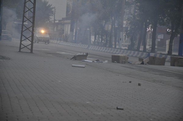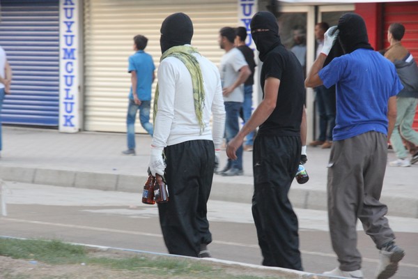 Kalabalığın dağılmasının ardından yüzleri kapalı olan eylemciler, polislerin bulunduğu bölgeye havaifişek ve molotof atması üzerine de polis grubu dağıtmak için müdahaleye başladı. Polisin basınçlı su, plastik mermi ve gaz bombalarına, göstericiler molotof, havai fişek ve zaman zaman da ses bombası atarak karşılık verdi. Çıkan olaylar üzerine esnef kepenk kapatırken, ilçedeki olaylar ara sokaklarda sürüyor.
