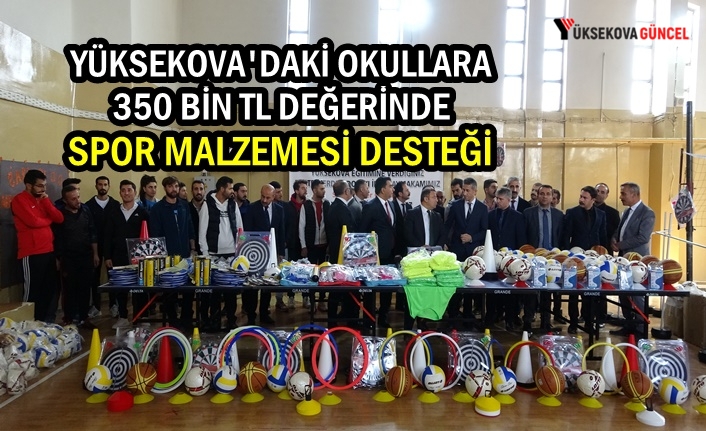 Yüksekova Kaymakamlığı ve belediyesi tarafından okullara 350 bin TL değerinde spor malzemesi desteği yapıldı.