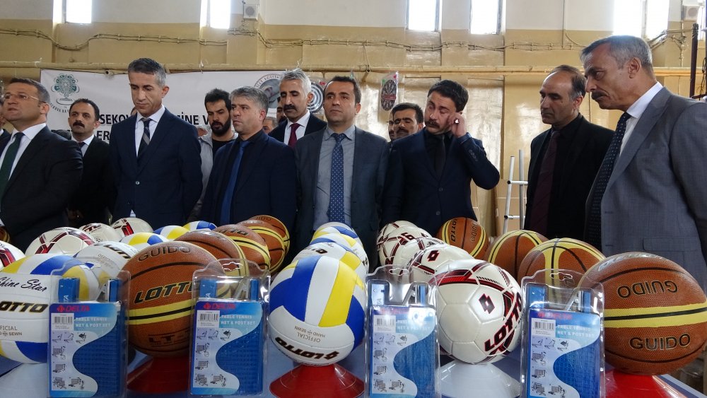 Yüksekova İlçe Milli Eğitim Müdürlüğünün talebi üzerine harekete geçen Yüksekova Kaymakamlığı ve belediyesi, Sabancı İlk ve Ortaokulu spor salonunda düzenlenen programla okullara 350 bin TL değerinde bin 47 parçadan oluşan farklı spor dallarına ait malzeme dağıttı.