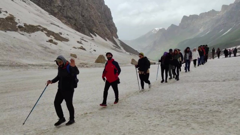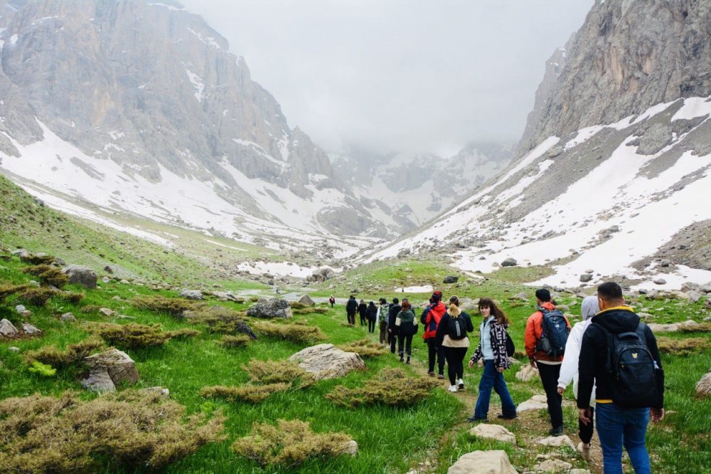 Sabah saatlerinde Yüksekova ilçesi Cengiz Topel Caddesi'nde bir araya gelen Yüksekova Ekolojik Platformu Dağcılık ve Spor Derneği üyesi 40 kişilik grubun bu haftaki rotası, Yüksekova ve Hakkari arasında yer alan Cennet ve Cehennem Vadisi’nin buzulları oldu.
