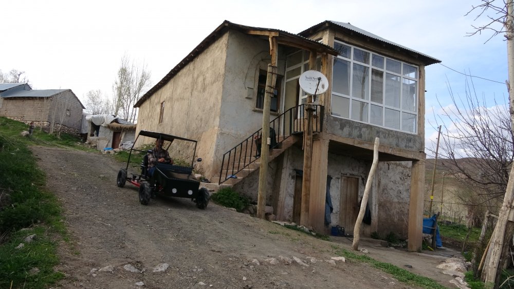3 aylık bir çalışmanın neticesinde, herkesin kendisiyle dalga geçerek gerçekleştiremeyeceğini söylediği aracı yapan genç, daha sonra aracına binerek köyde deneme turu attı.
