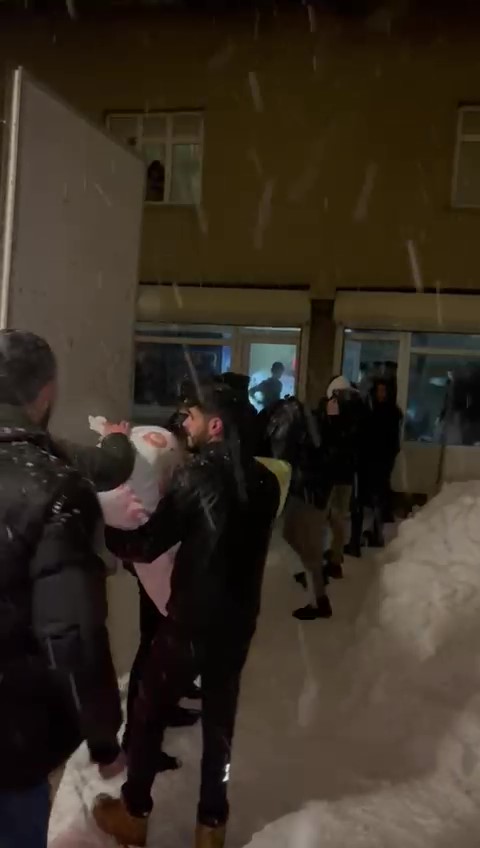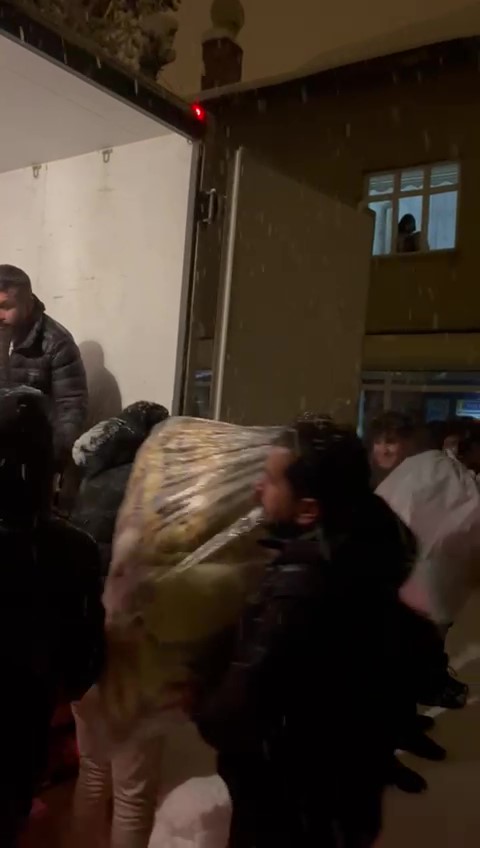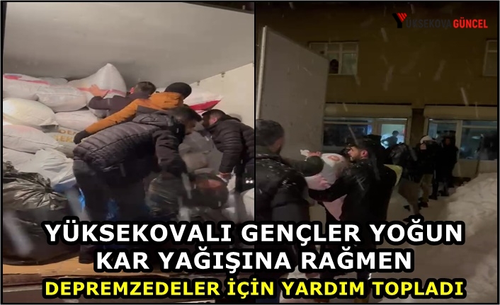 Yüksekova ilçesindeki gençler, Kahramanmaraş olmak üzere 10 kentte yaşayan depremzedeler için yoğun kar yağışı altında yardım topladı.