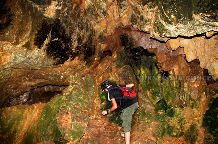 Yıllardır geziyorum ve farklı farklı yerler keşfettim, fakat ilk defa böyle bir mağaraya denk geldim. Mağaranın içerisinde sarkıt şeklini almış taşlar var. Bu taşlar zümrüt yeşili yosunlarla dolu ve zeminde bastığımız taşlar kaygandı.
