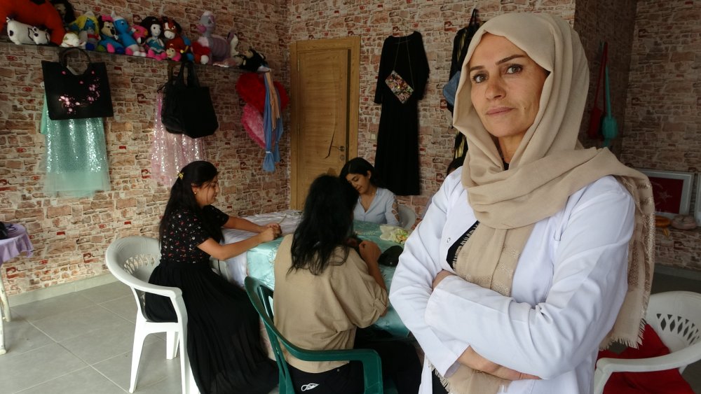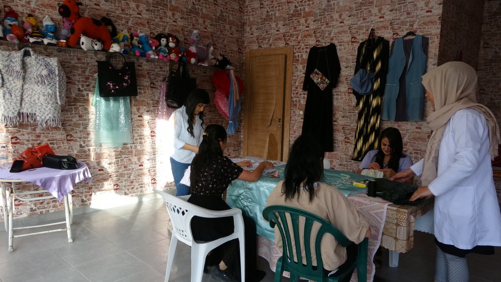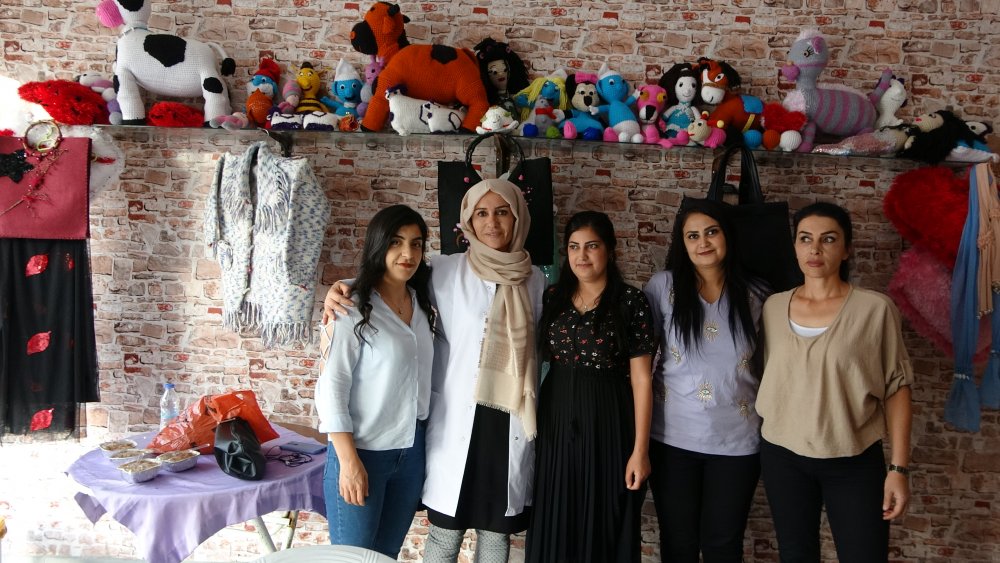Yüksekova ilçesinde yaşayan Gülay Açıkel ile beraberindeki kadınlar, kendi imkânlarıyla açtıkları iş yerinde atık malzemelerden ürettikleri ürünleri satarak aile bütçelerine destek oluyor.