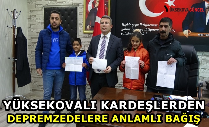 Yüksekova ilçesinde yaşayan Nazar (11), Mazlum ve Medine Erhan isimli kardeşler, biriktirdikleri harçlıklarını AFAD'ın banka hesabına aktararak yetkililere dekontunu teslim ettiler.