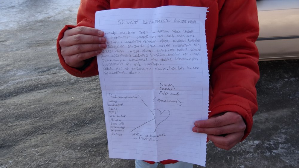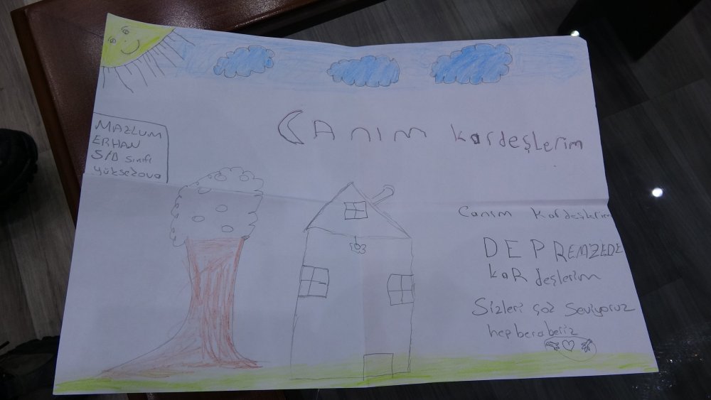 Bugün çok mutlu olduklarını ifade eden Nazar Erhan, "Depremzede kardeşlerimize çok üzülüyoruz. Onlara çok üzülüyoruz. Bizde kardeşlerle beraber harçlıklarımızı depremzede kardeşlerimize gönderdik. Elimizde geldikçe onlara yardım edeceğiz ve onların yanında olacağız. Sağolsun babamız da bizim harçlıklarımızı bankadan yatırarak yetkililere teslim ettik" İfadelerini kullandı.