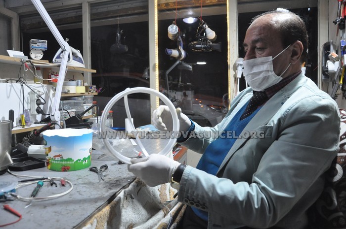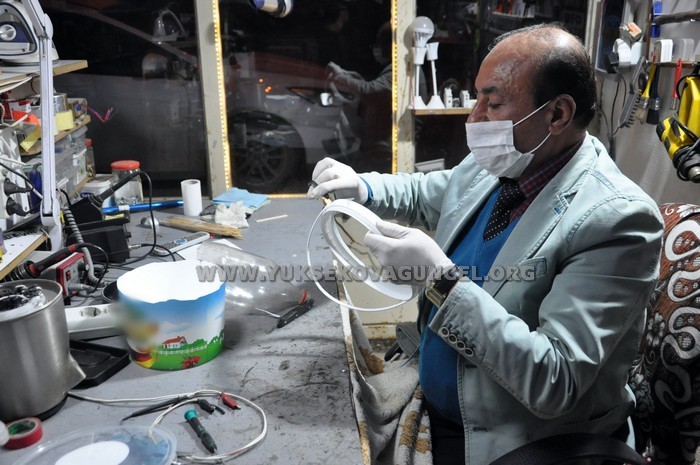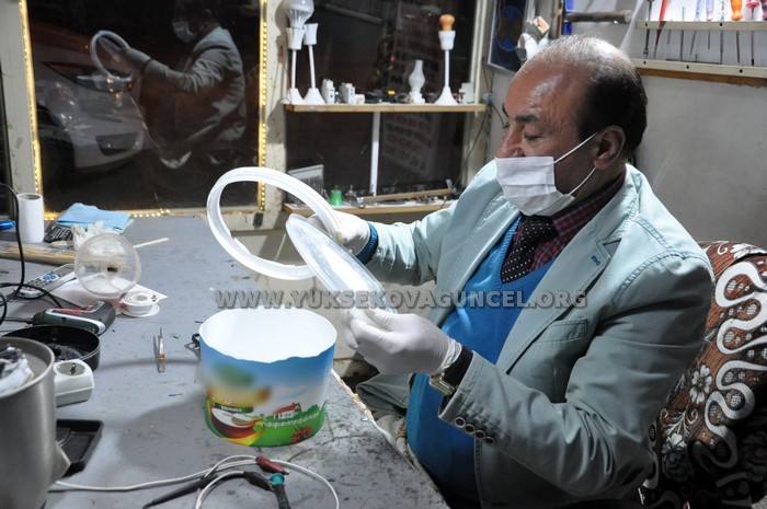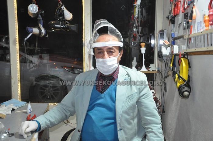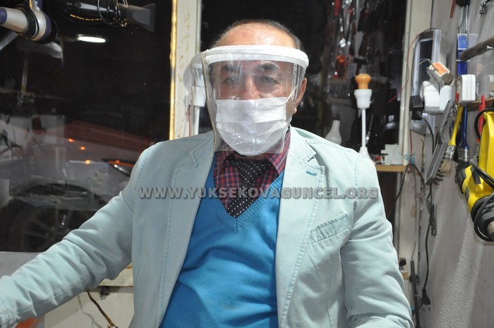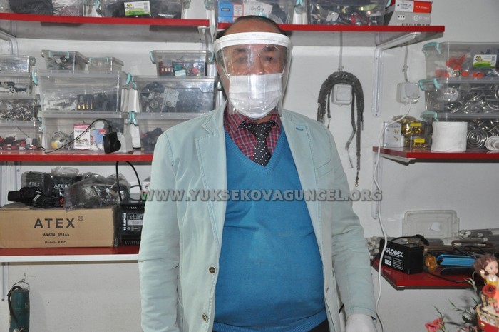 Yüksekova ilçesine bağlı Esentepe Mahallesinde ikamet eden Yunus Kayhan (70) isimli vatandaş, evinin yanında bulunduğu elektronik dükkanında Covit-19 hastalığına karşı, kimsenin aklına gelmediği malzemelerle siperlik maske yaptı