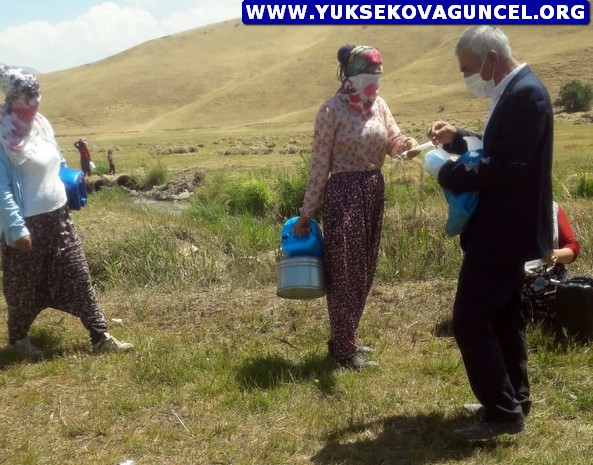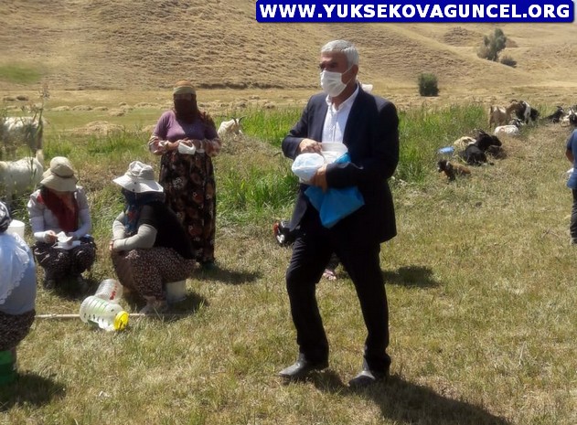 Yüksekova ilçesine bağlı Suüstü Köyü Muhtarı Bedirhan Oğuz, korona virüse dikkat çekmek için yaylaya çıkarak maske dağıttı.