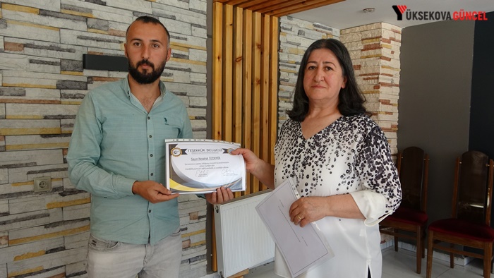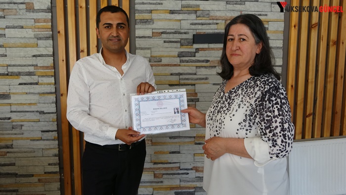 Özdemir’e 32 yıllık iş tecrübesinden dolayı Milli Eğitim Bakanlığı tarafından ‘Başarı Belgesi’, Yüksekova Halk Eğitim Merkezi Müdürü Kenan Canan tarafından da ‘Teşekkür Belgesi’ ve plaket verildi.