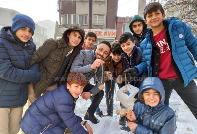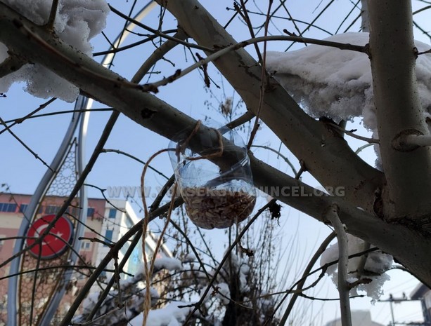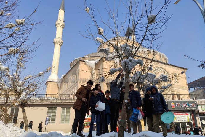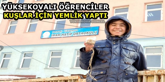 Yüksekova İmam Hatip Ortaokulu öğrencileri, kuşlar için yemlik yaparak ağaçlara astı.