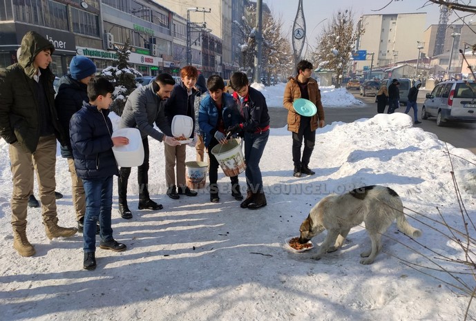 Onaylı ve öğrencileri, aynı zamanda çarşı merkezinde bulunan köpekler için yemek artıkları toplayarak, yemek artıklarını köpeklere dağıttı.