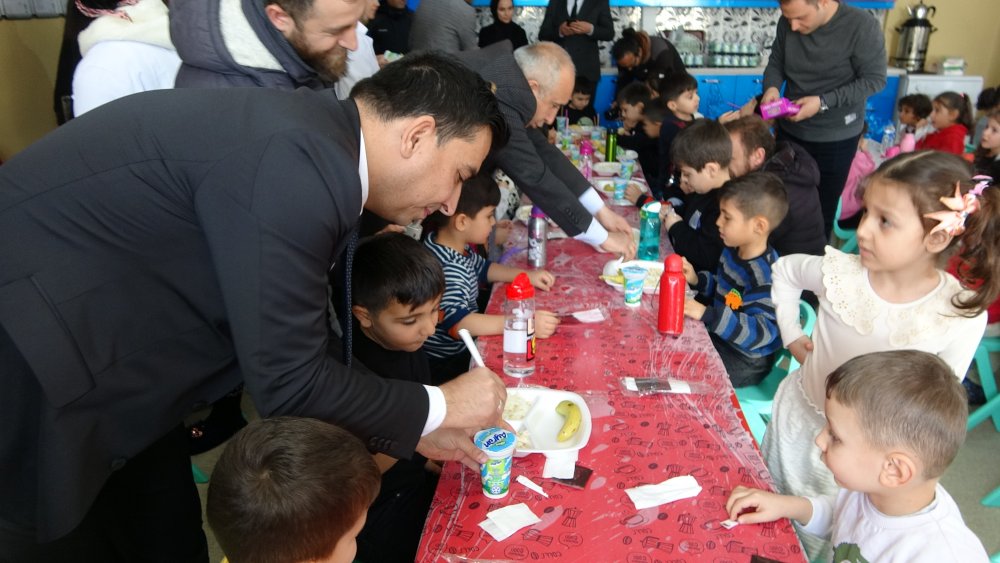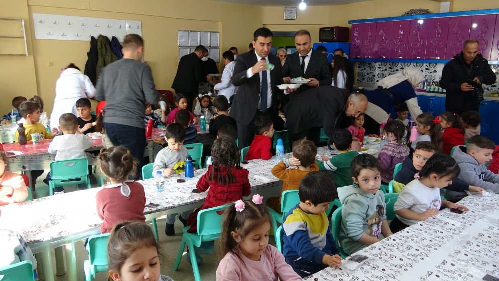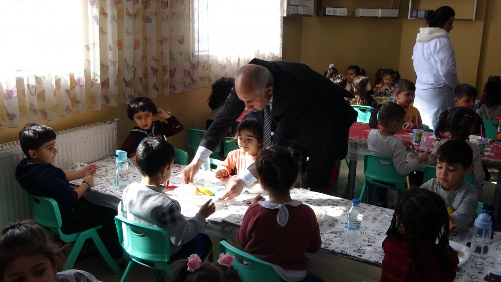 Yüksekova ilçesinin Murat Işık Anaokulunda düzenlenen yemek programında öğrencilere yemekler sunuldu.