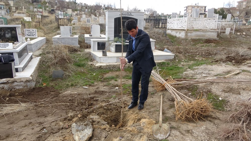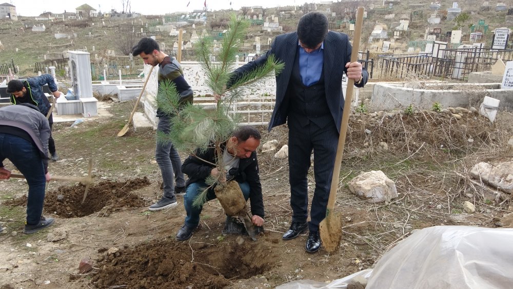 Yüksekova ilçesinde yaşayan Behçet Özdil isimli öğretmen, öğrencileriyle beraber mezarlıkta 100 fidan dikerek büyük takdir topladı.