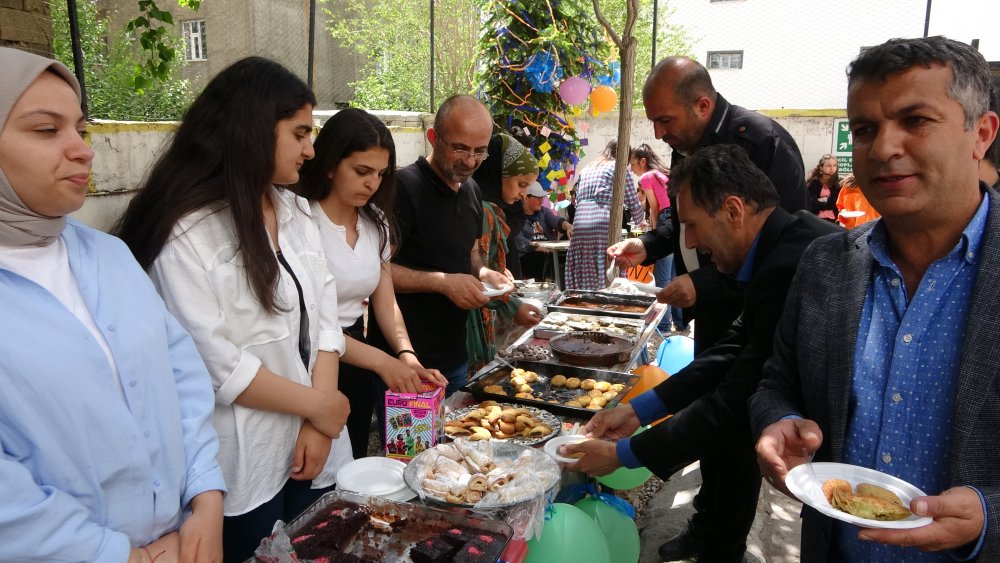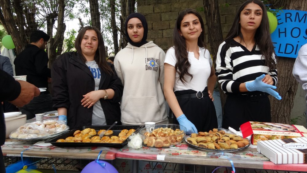 Öğretmen ve öğrenciler kurdukları standlarda kendi hazırladıkları pasta, tatlı, içecek ve yemekleri satarak maddi durumu iyi olamayan aileler için para topladılar.