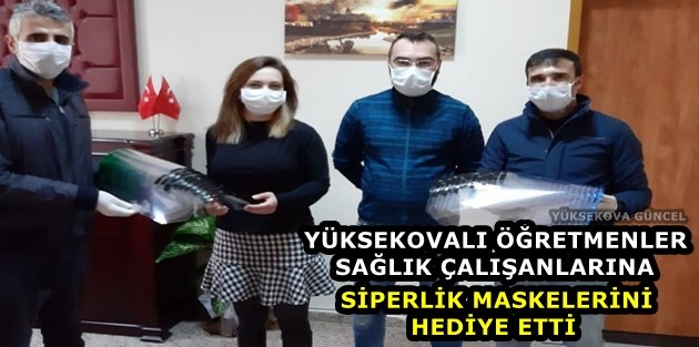 Yüksekova ilçesindeki öğretmenler, yaptırdıkları siperlik maskeleri devlet hastanesinde bulunan sağlık çalışanlarına hediye etti.