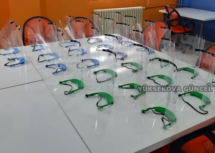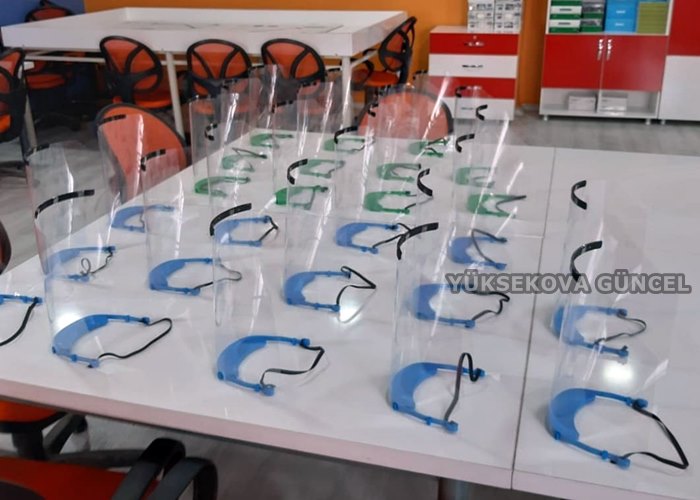 Yüksekova Milli Eğitim Müdürlüğü öncülüğünce Şemsettin Onay Anadolu Lisesinde yapılan siperlik maskeler, Yüksekova Devlet Hastanesindeki sağlık çalışanlarına hediye edildi.