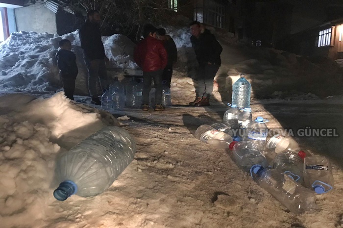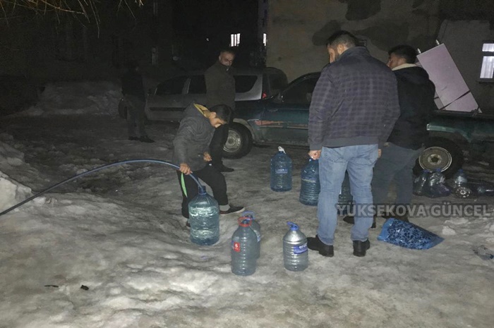 Yüksekova ilçesinde su ihtiyacını karşılamak için kullanılan sondaj bozulunca ilçenin bazı mahalleleri susuz kaldı. 2 gündür susuz kalan vatandaşlar dondurucu soğukta uzak mahallere giderek bidonlarla evlerine su taşıyor. Kışla Mahallesi'nde oturan Fikret Orhan, "Bir iki haftadır bizim mahallede su akmıyor. Her gün buraya gelip bidonlara su doldurup götürüyoruz. Hava da soğuk, donuyoruz. Çoluk çocukla gelip burada su götürüyoruz. Bir günlük depoluyoruz, bitiriyoruz tekrar diğer gün gelip alıyoruz" dedi.