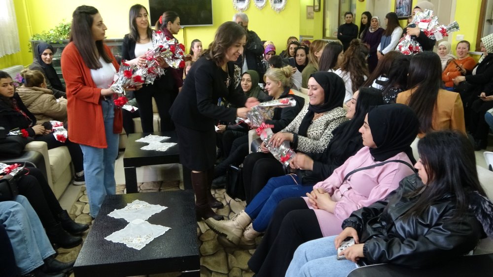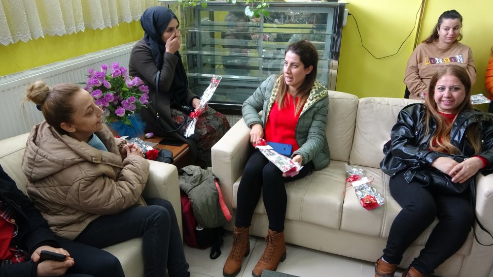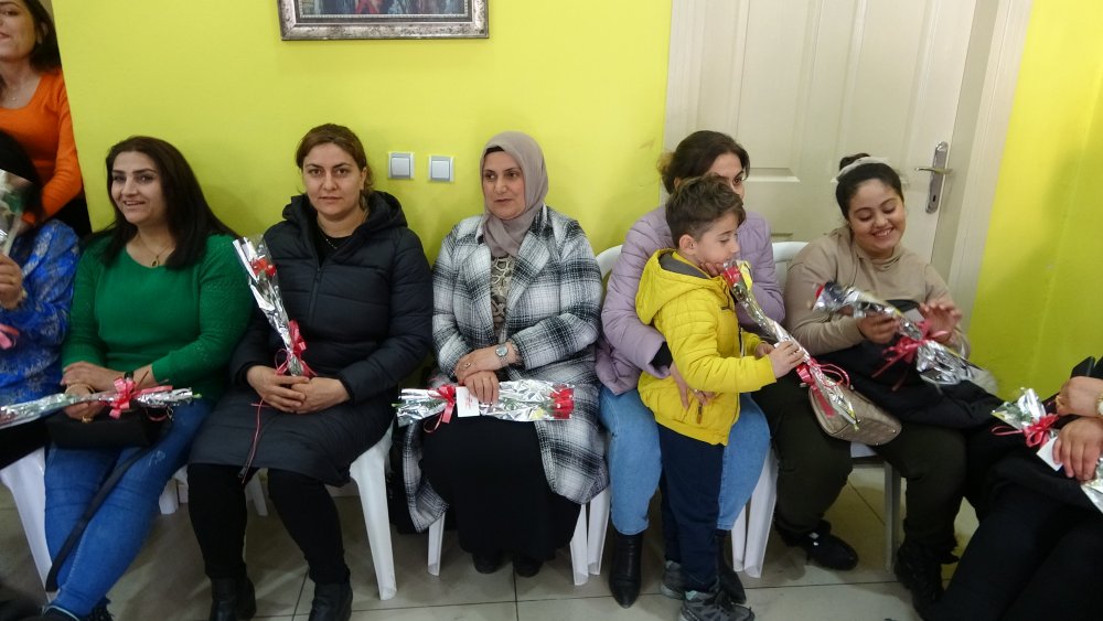 Yüksekova Aile Destek Merkezi’nde depremzede kadınlar için düzenlenen etkinlikte kadınlara karanfil dağıtılırken, bu sene özellikle depremzede kadınlar unutlmadı.