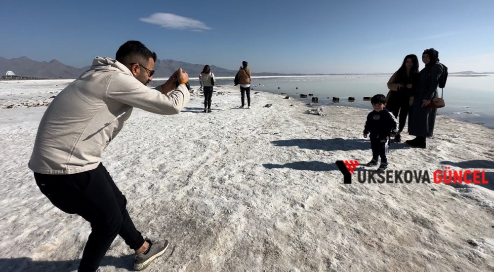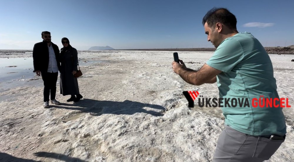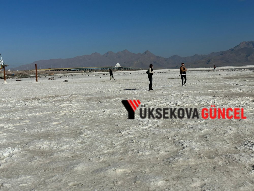 Yüksekova ilçesinden 15 kişilik grup STIGIA Turizm düzenlediği turla, İran'ın Urmiye kentinde yer alan ve küresel ısınmadan dolayı su kaybı yaşayan Urmiye Gölü'nde yürüyerek fotoğrafladılar.