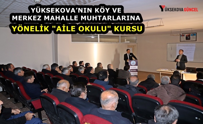 Yüksekova Halk Eğitim Merkezi Müdürlüğü tarafından köy ve merkez mahalle muhtarına ‘Aile Okulu’ kursu verildi.